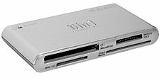 CompactFlash cards on digital cameras, Memory Sticks on PDAs, Smart Media on MP3 players, and more. What's certain, in recent times the situation of storage card format has turned into a jungle, and more novelties loom over the horizon. A desk resembling a power generation station because of the quantity of cables and wires running all over it is nowadays a common sight, especially when one (like me) owns several devices that need to be linked to a computer. In case one also frequently needs to download files, images and music to your computer from your PDA or handheld, MP3 player, digital camera or other device and vice versa, the only solution making sense is to use a multicard reader.